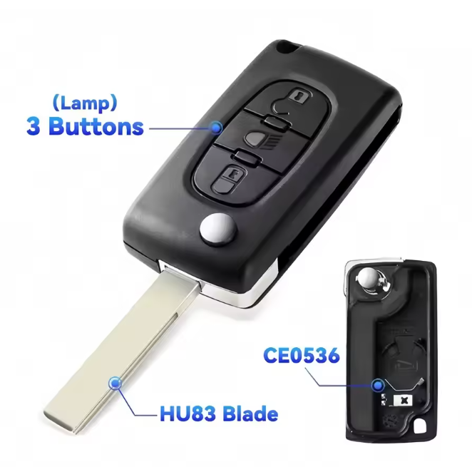 Peugeot en Citroën / Sleutelbaard HU83 / Sleutelcode CE0536 / 3 knops / Licht knop / Lamp knop / 3 knoppen Autosleutel behuizing