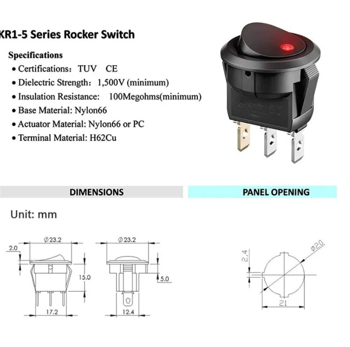 5 stuks Schakelaar met LED indicatielampje / Tuimelschakelaar / Wipschakelaar / Rood / Oranje / Geel / Groen / Blauw