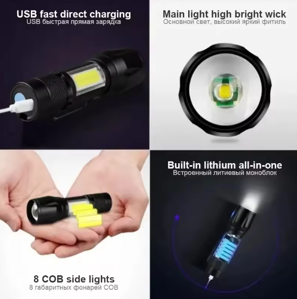 ✅ Oplaadbaar: De zaklamp heeft een ingebouwde accu en is snel en eenvoudig op te laden.
