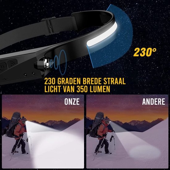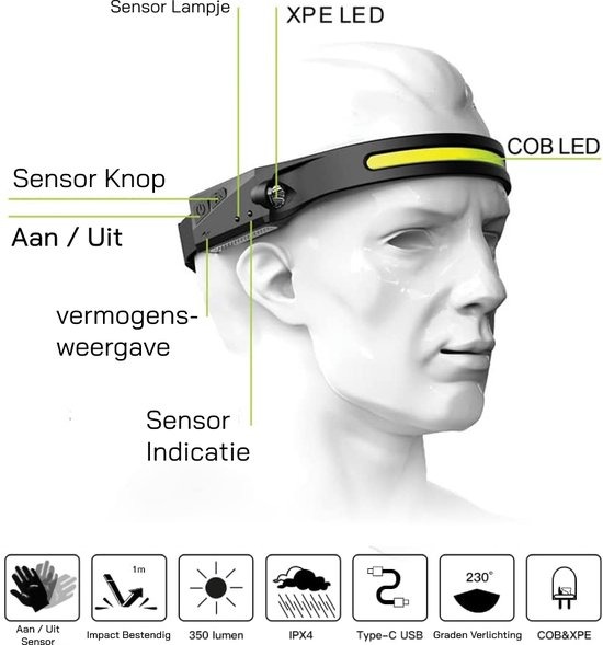 - 1x LED hoofdlamp inclusief accu (oplaadbaar)