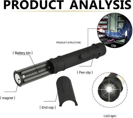 Deze LED inspectie werklamp is klein van formaat en werkt op batterijen welke zijn inbegrepen. Heeft meerdere lichtstanden en achterop een sterke magneet om eenvoudig inspecties aan bijvoorbeeld uw voertuig uit te voeren