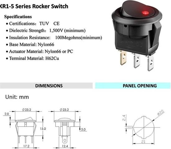 Betreft een schakelaar met LED indicatielamp. Specificaties: