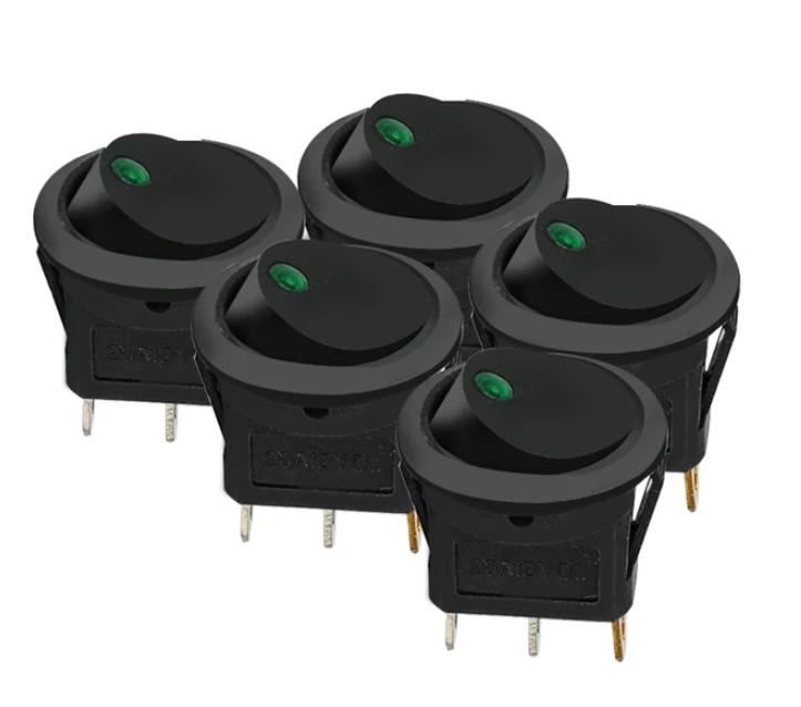 5 stuks Schakelaar met LED indicatielampje / Tuimelschakelaar / Wipschakelaar / Rood / Oranje / Geel / Groen / Blauw