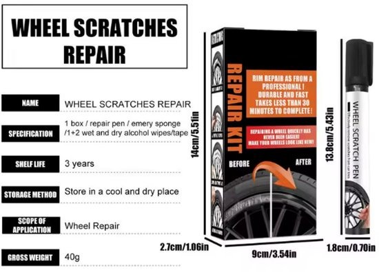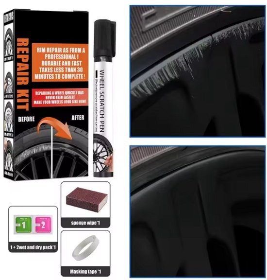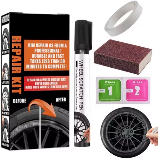 Set om krassen/stoeprand schade aan uw zwarte velg(en) eenvoudig en snel te repareren. Door middel van de bijgeleverde handleiding of het bekijken van de foto’s in de advertentie kunt u eenvoudig en snel zelf de schade aan uw lichtmetalen velgen van uw voertuig herstellen. Bijvoorbeeld stoeprandschade. Dit bespaart u een hoop kosten door het niet te hoeven uit te besteden.