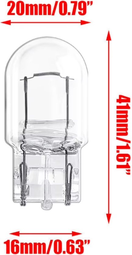 LET OP: enkele functie lampen met één gloeidraad voor: dagrijverlichting, achterlicht, remlicht, etc. Dit is een grote steekfitting T20! Geen kleine steekfitting (T10)!